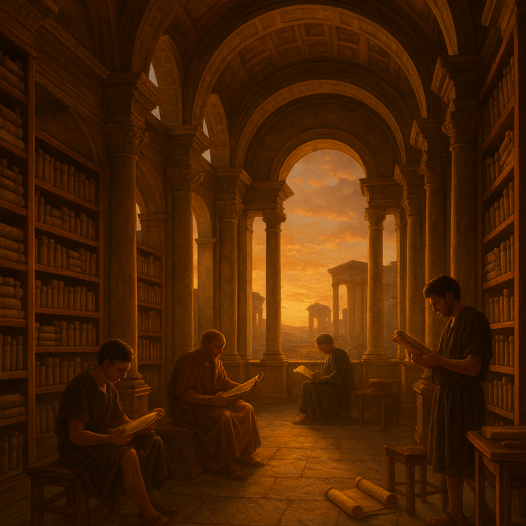 로마의 도서관은 기록 보관소에서 지식·권력·공동체의 상징으로 변모했다. 단순한 책 저장소를 넘어 로마 문명의 정수를 담은 그릇이었다.