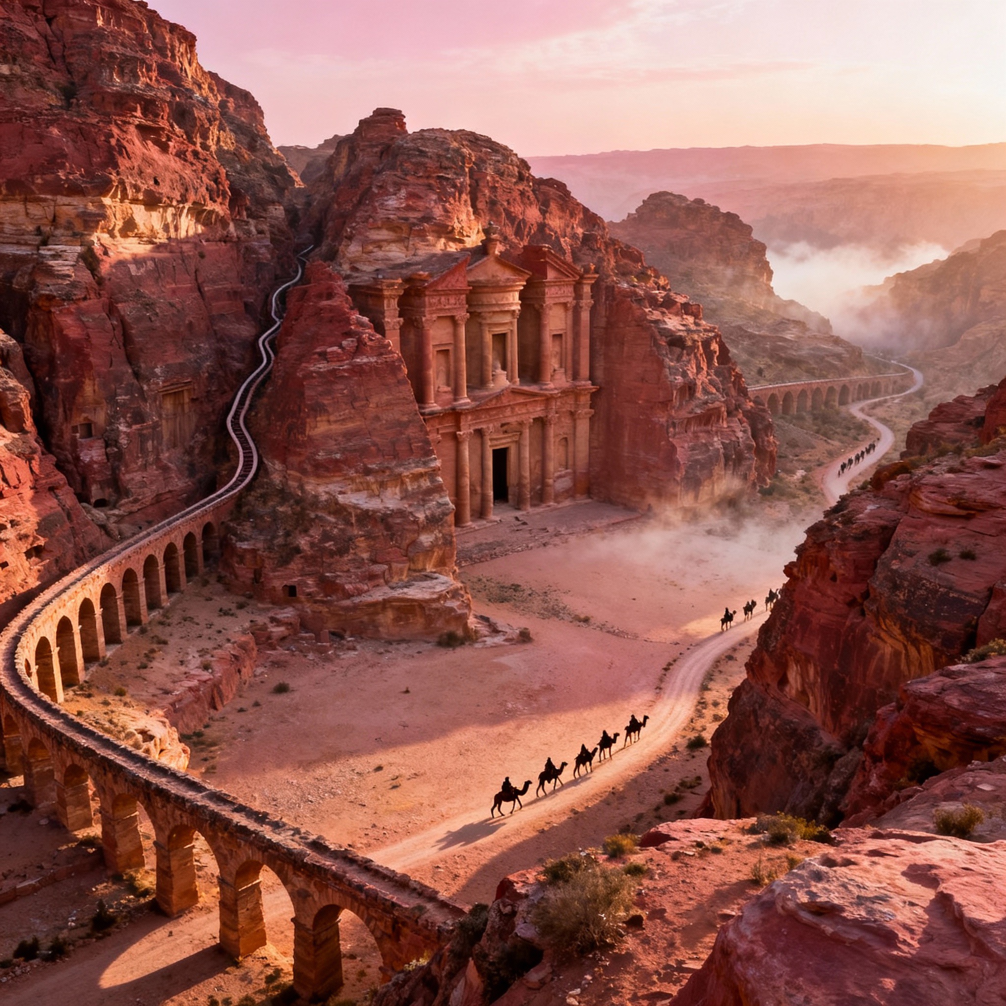 요르단 남부의 거친 산악지대, 붉은 사암 벽 사이로 스며드는 아침 햇살이 2천년 전 나바테아인의 숨결을 깨운다. 바위에 새겨진 도시 페트라는 협곡을 따라 걷는 순간마다 경이로운 역사와 문명이 교차하는 거대한 무대를 선사한다. 이곳에서 만나는 건축·공학·교역·장례 문화는 고대인의 지혜와 열망이 미래로 이어지는 시(詩)와도 같다.