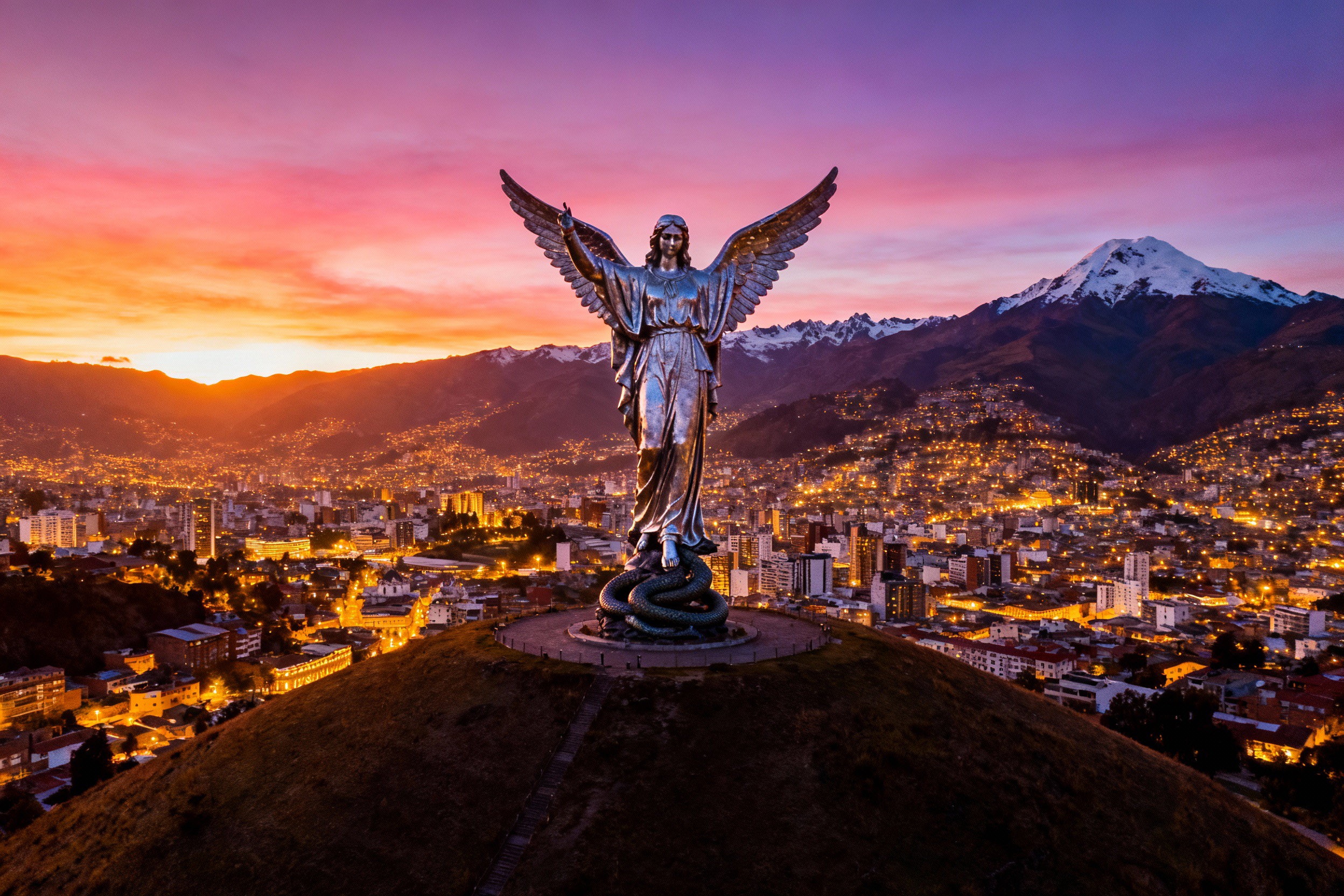 고도 2,800미터를 훌쩍 넘는 도시 키토 한가운데, 둥근 빵처럼 봉긋 솟은 언덕 하나가 있다. 해가 저물 무렵, 오렌지빛이 안데스 능선을 감싸 안을 때 그 언덕 위에는 거대한 여인이 날개를 펴고 서 있다. 사탄을 상징하는 뱀을 밟고, 도시 전체를 내려다보는 파네시요 언덕 성모상이다.