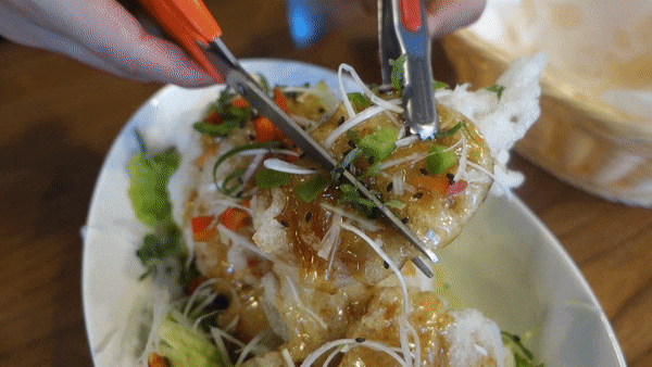 튀김이 얇으면서도 소스가 부어져 왔는데도