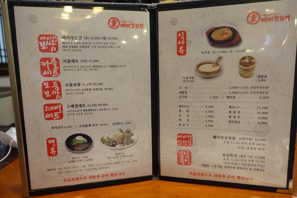 배비장상차림 12,000 / 점심특선 15,000 으로