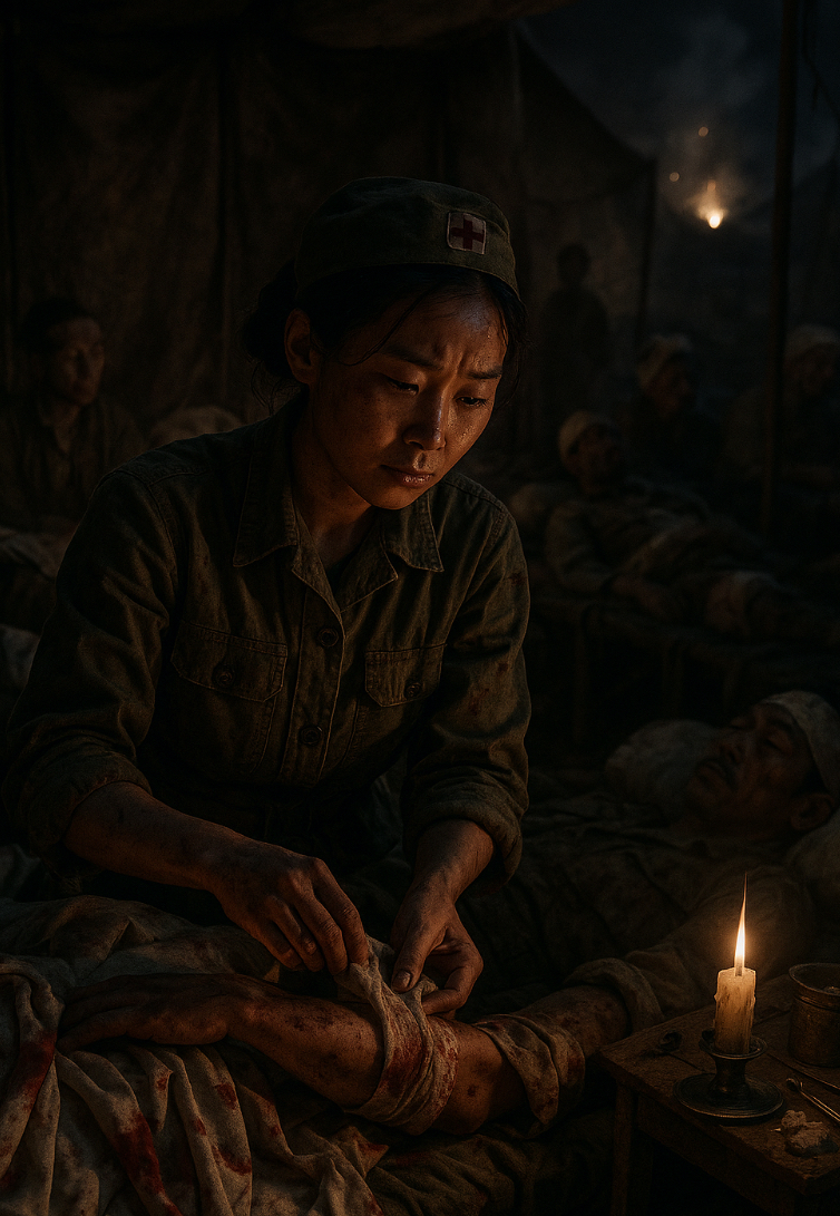 낮에는 총성 속에서 붕대를 감고, 밤에는 촛불 아래서 링거를 놓았다. 손이 부족해 한 사람이 수십 명의 환자를 돌봤고, 붕대가 모자라 군복을 찢어 쓰고, 소독약이 부족할 땐 소주로 대신했다. 이들의 헌신은 단지 의료행위 그 이상이었다. 치유와 안식을 함께 전한 이들이 있었기에 많은 생명이 삶으로 돌아올 수 있었다.