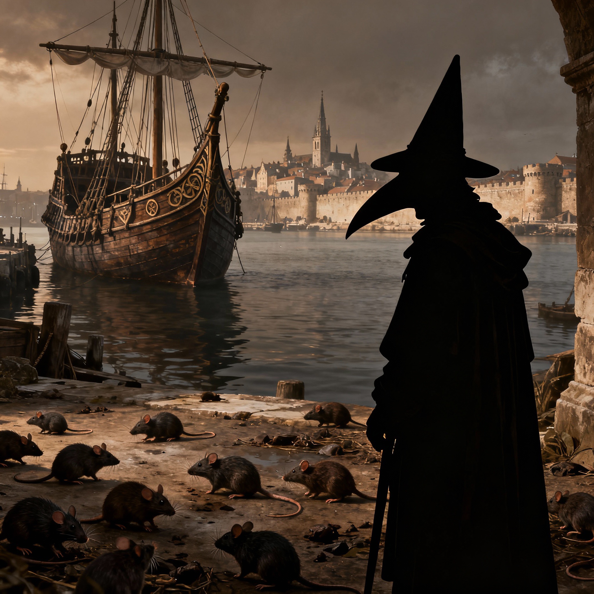1347년 가을, 크림반도의 카파 항구에 정박한 제노바 상선들이 페스트를 싣고 들어왔다. 선원들은 몸 곳곳에 검은 종기를 동반한 림프절 부종 증세를 보였고, 며칠 만에 절반 이상이 사망했다. 이 병원균은 예르시니아 페스티스(Yersinia pestis)라는 박테리아로, 벼룩이 옮기는 매개체였다. 중세 도시들은 목조 건물이 빽빽해 쥐가 서식하기 좋았고, 상인과 순례자가 빈번한 교역로는 병원균 전파를 가속화했다. 전염이 시작된 후 6개월 만에 이탈리아 북부 전역을 강타했고, 몇 년 이내에 프랑스·영국·독일·스칸디나비아·러시아 일부까지 확산됐다. 감염자의 60-80%가 일주일 내 사망했으며, 당시 피렌체 인구 절반, 런던 주민 3분의 1이 목숨을 잃었다.