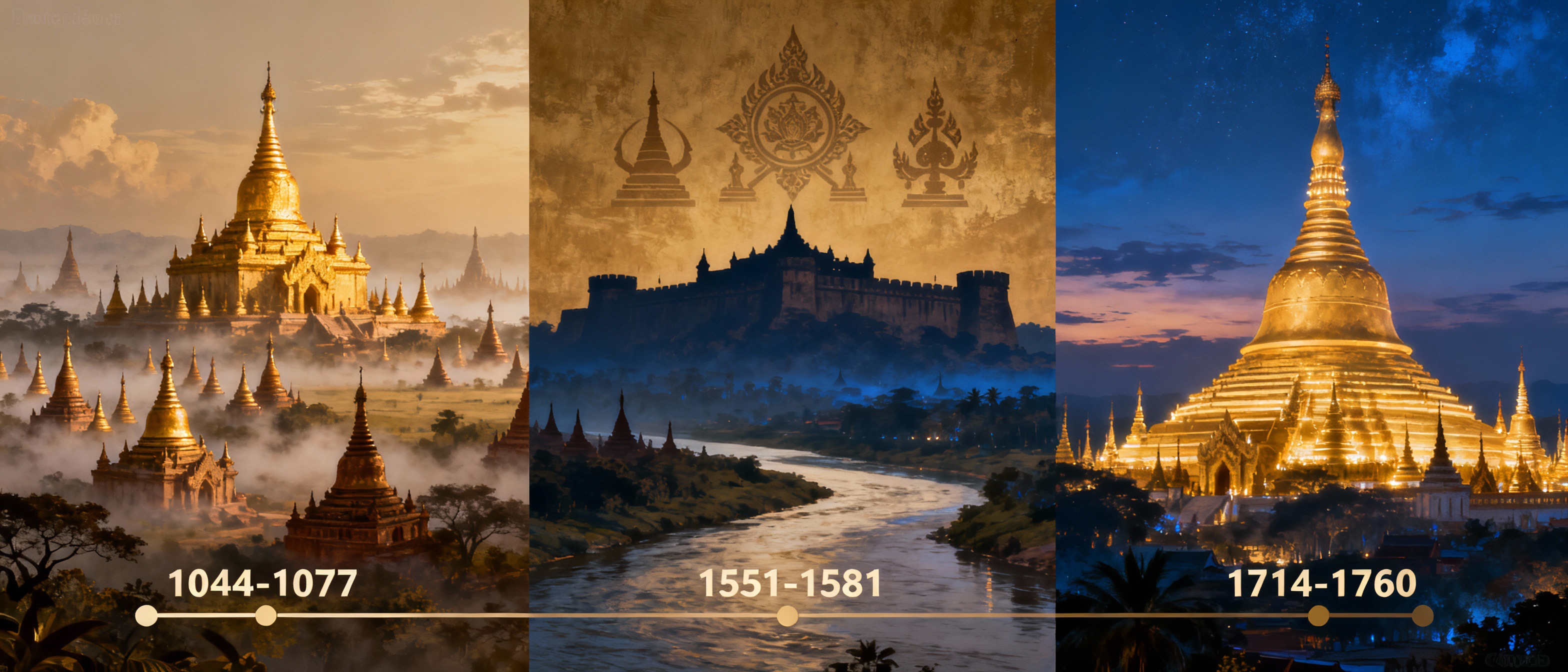 아노라타 왕(1044-1077), 버인나웅 왕(1551-1581), 그리고 알라웅파야 왕(1714-1760). 이들은 서로 다른 시대에, 각기 다른 도전을 마주했던 인물들이지만, 한 가지 공통점이 있다. 바로 분열된 땅을 하나로 묶고, 불교를 마음의 중심에 안착시키며, 버마족의 정체성을 확립시켰다는 점이다. 오늘 우리가 마주할 이 세 왕의 이야기는 단순한 역사 기록이 아니다. 이는 꿈을 좇는 인간의 열정, 신념을 지키려는 투지, 그리고 한 나라를 사랑하는 마음이 얼마나 위대할 수 있는지를 보여주는 서사다.